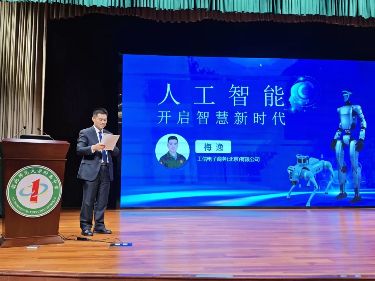 10月30日下午(星期四),湖师大附中(黄石一中)2007届优秀校友、工信电子商务(北京)有限公司总经理梅逸重返母校,为高二学生作题为《人工智能,开启智慧新时代》的专题讲座。本次活动不仅是校友反哺母校的佳话,更是一场连接前沿科技与基础教育的知识盛宴。