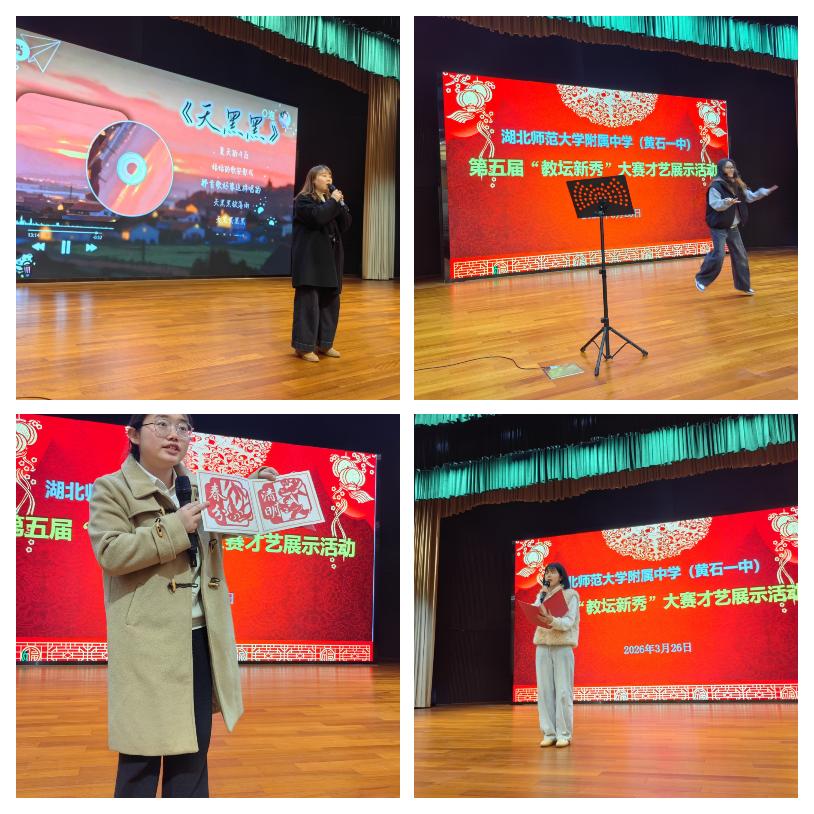 为锤炼青年教师综合素养,展现新时代教师昂扬风貌,3月26日星期四),湖师大附中(黄石一中)第五届“教坛新秀”评选才艺展示活动在综合报告厅温情启幕、精彩绽放全校35岁以下青年教师全员参与、踊跃亮相以饱满热情与多元才艺,尽显青春担当与师者风采。