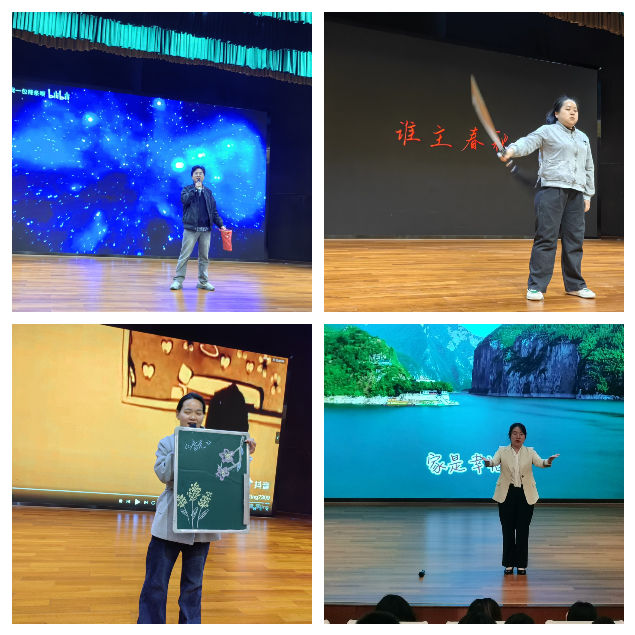 本次才艺展示是“教坛新秀”评选的重要环节更是青年教师综合素养的集中展现。舞台上形式多样、精彩纷呈:婉转歌声与创意歌曲改变情真意切,舞蹈、健美操、手语操身姿轻盈、灵动舒展,诗朗诵、配音、讲故事声情并茂感染力十足武术表演刚劲有力、气势昂扬,魔术表演利落、妙趣横生惊喜不断厨艺展示、剪纸艺术、现场黑板画等特色才艺匠心独具创意十足每一份作品,每一场表演都饱含巧思与热爱,赢得现场师生阵阵喝彩与热烈掌声。