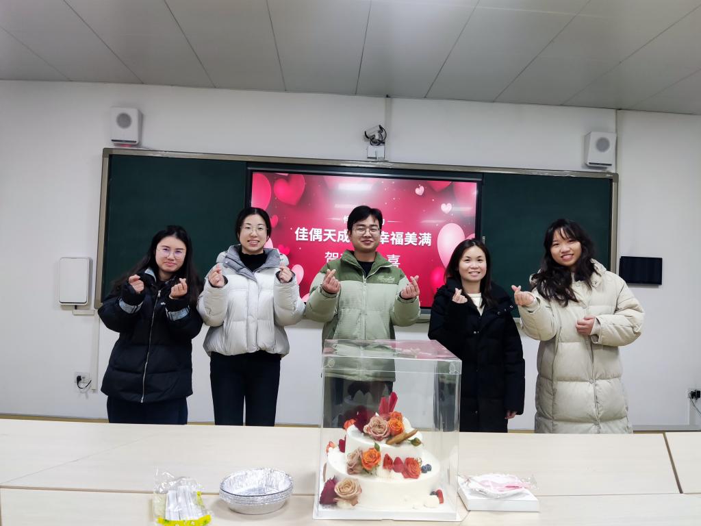 瑞雪映初心,红梅贺佳缘。为厚植尊师重教风尚,提升教师职业幸福感与归属感,筑牢温馨和谐的校园文化根基,1月20日(星期二)上午,湖师大附中(黄石一中)校工会在职工心灵驿站举办了“佳偶天成,幸福美满”高三年级新婚教师集体祝福活动。校领导、高三年级组负责人及教师代表欢聚一堂,共同为五位新婚教师送上专属温情与美好祝福,现场暖意融融、喜气洋洋。本次活动由校工会主席林海燕主持。