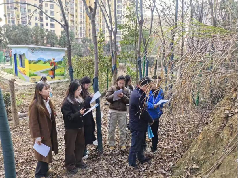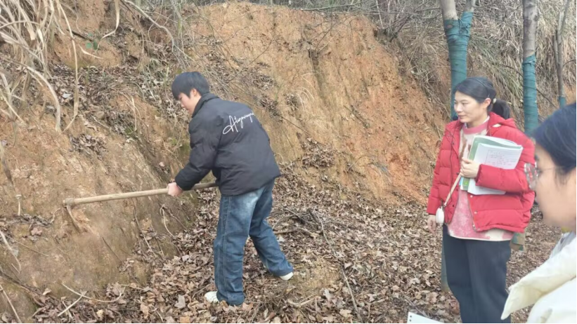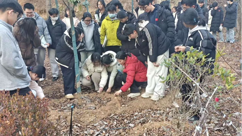 “同学们仔细观察这处土壤剖面,看看腐殖质层的颜色和厚度,再对比旁边植物的根系分布,能发现什么关联?”1月12日(星期一)下午第三节课,湖师大附中(黄石一中)校园内的“励耕园”里热闹非凡,高一地理组汪丹华老师打破传统课堂界限,将地理课搬到户外,让学生在“田间地头”开启了一场沉浸式的“土壤——植被”探秘之旅。