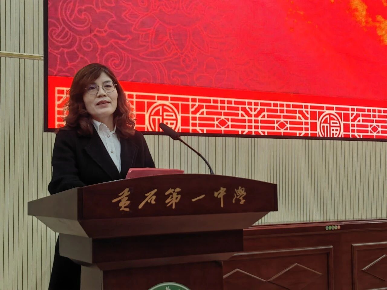 活动伊始,湖师大附中(黄石一中)校长姜小燕致欢迎辞。她代表学校对各位专家、教师的到来表示热烈欢迎,并指出,此次活动既是黄石语文学科课改的创新实践,更是打通学段壁垒、坚持问题导向、共促教师成长的重要契机。初高中语文衔接是学生语文学习能力从“积累奠基”向“素养进阶”跨越的关键节点,而阅读教学则是提升语文核心素养的核心路径。她介绍,学校始终以书香校园建设为抓手,坚持开展早读、午读和每日经典诵读,还开设阅读课、举办读书班和读书会,“三年内读完10部经典”已成为每一位湖师大附中(黄石一中)学生的必修课。她表示,期待通过本次“现场研讨+网上同步直播”的多元互动形式,破解学生初高中衔接适应难题,让“课堂”真正成为师生共同成长的“学堂”。